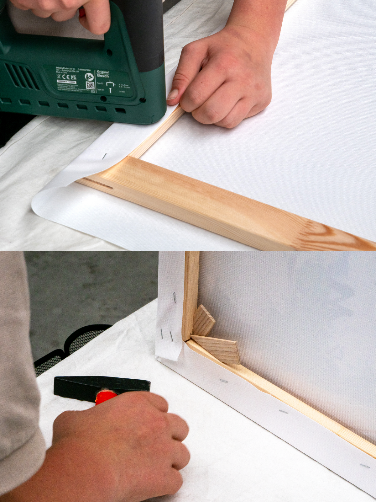 Wij werken met hoogwaardig, echt canvasdoek en elk kunstwerk wordt met de hand gespannen op een stevig, vormvast houten frame. Dit is puur vakmanschap – gemaakt om jarenlang mee te gaan en jouw ruimte echt te verrijken.