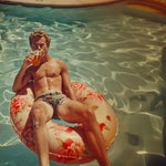 „Summer Fun“ zeigt eine ruhige Szene mit einem Mann, der gemütlich in einem Schwimmbecken treibt. Das Bild strahlt Ruhe und Luxus aus und ist somit eine perfekte Ergänzung für jedes moderne Interieur. Die sanften Farben und das klare Wasser laden zum Träumen von sonnigen Tagen und unbeschwerten Momenten ein.