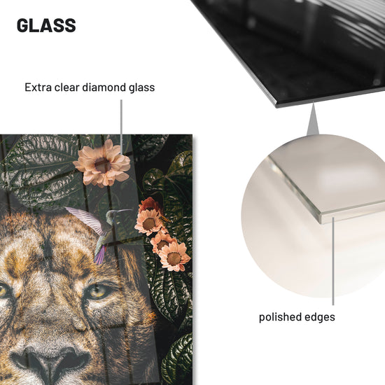 A photo printed behind diamond-cut glass makes any room shine. The image has a crystal-clear high gloss, brilliant color intensity, and an elegant appearance. When light hits it from the side, the motif shines beautifully. The motif is printed in a mirrored format on 4mm tempered glass. The image is then given a white background. The glass edges are polished, giving the painting an even more luxurious look. The hanging system on the back makes the painting appear to float in front of the wall. Choosing diamond-cut glass means choosing clarity. A beautiful material.