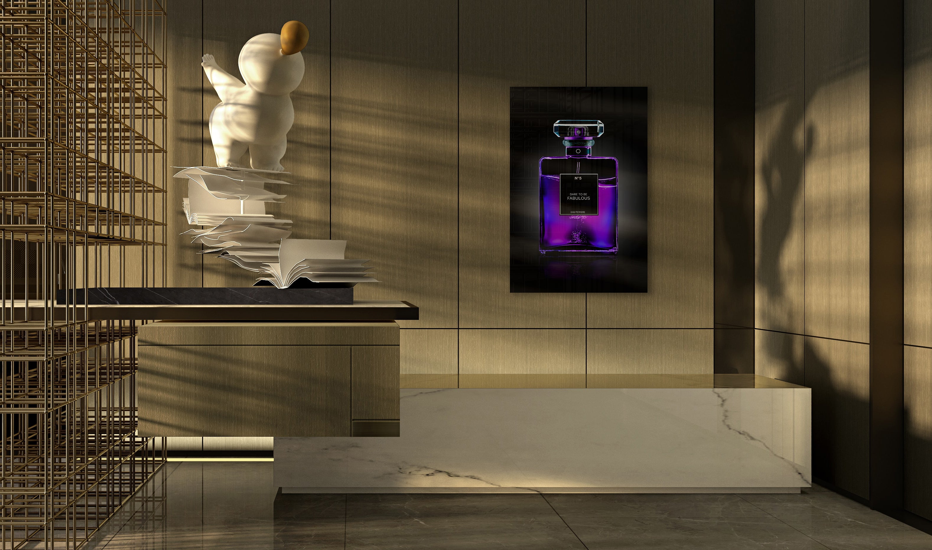 Imagine a beautifully lit living room, a cozy dining room or a serene bedroom, all enriched with The Perfume Collection II. This artwork acts as the perfect centerpiece of your interior, a source of inspiration and conversation. Add this statement piece to your home and experience how it transforms your space into a stylish oasis.