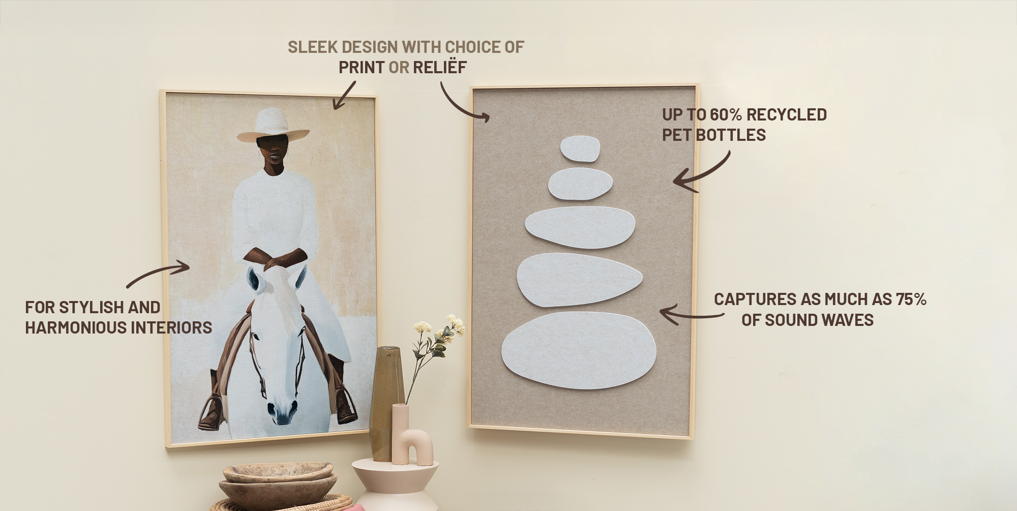 Put an end to annoying reverb and echoes with a wall decoration that not only enhances your interior, but is also proven to dampen sound.