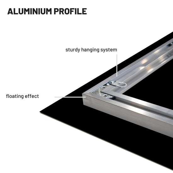 An aluminum profile is 5cm smaller all around than a panel. The panel has a floating effect, extending 2cm from the wall. Besides creating a beautiful, stylish effect, the profile also provides the wall panel with extra stability.